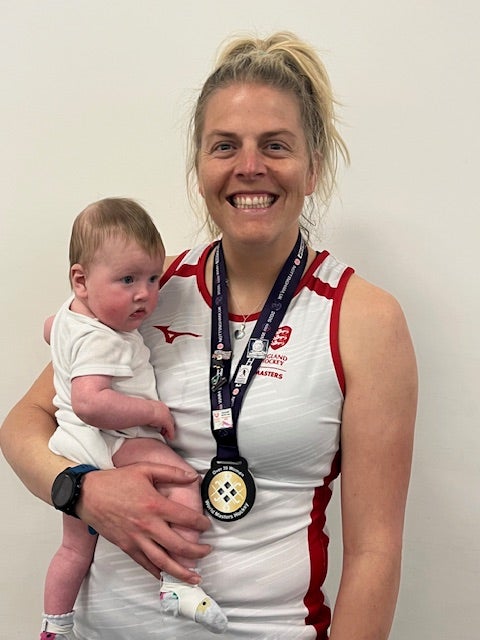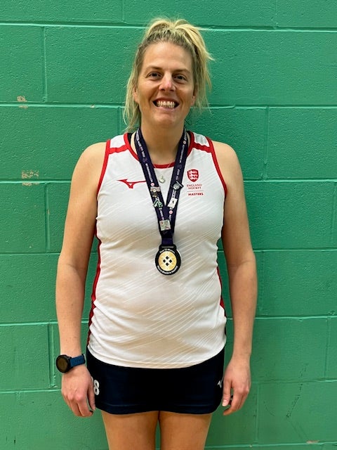 Steph’s hockey journey has spanned many years, including playing National League indoor hockey earlier in her career. After stepping away due to a back injury, she rediscovered her love for the game this year — returning to competition and embracing Masters hockey.
